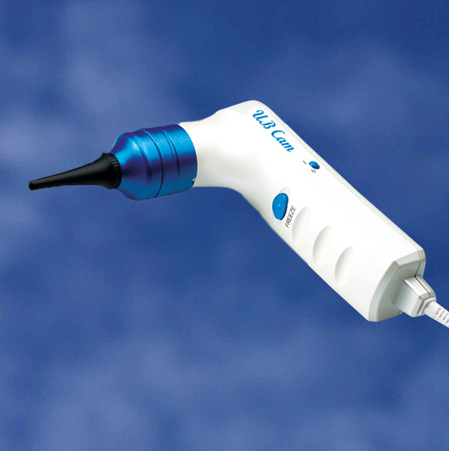 Otoscop cu camera video UB cam OTO 1000, cu achizitie si transmitere imagini la rezolutie efectiva de 640 x 480 pixeli, conexiune USB 2.0, corectie automata a culorilor, buton de marire/micsorare a imaginii (focus) si de retinere a imaginii (freeze), dotat cu 3 marimi de speculum auricular. Poate transmite imagini pe computere cu sistem de operare Wndows XP sau ulterior