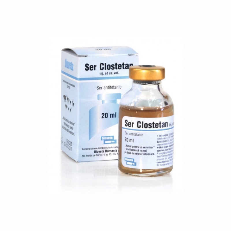 SER CLOSTETAN, ser antitetanic injectabil pentru cai, vaci, oi, capre, porci, câini şi pisici, pentru imunizare pasivă împotriva tetanosului