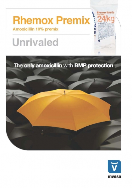 Amoxicilina este putin stabila in solutii apoase, de aceea se prefera administrarea ei in furaj. Protejata printr-o tehnologie moderna (BMP) molecula de amoxicilina devine insensibila la actiunea umiditatii, luminii, modificarilor de pH, modificarlor de temperatura sau presiune (rezista la granulare), la actiunea agentilor oxidoreducatori si la actiunea enzimelor.